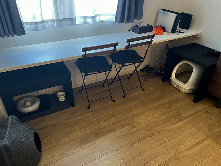猫ちゃんの水飲み場とトイレの目隠しも